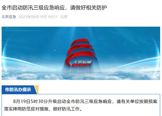 北京新闻根据北京官方紧急微信帐户的说法,北京洪水管制办公室于8月19日5:30推出,并对改进和发射的城市进行了第三层洪水预防响应的紧急响应。需要根据计划实施预防雨水措施,并在防洪中做得很好。 XIN JING编辑